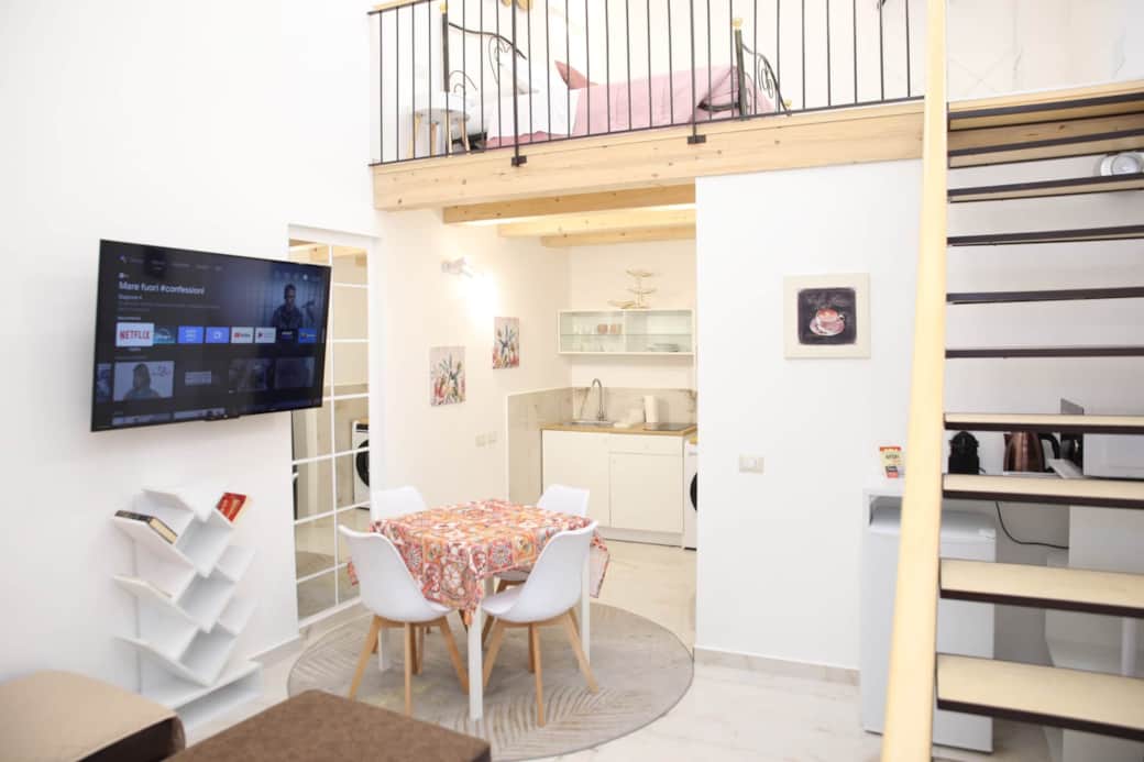 Madeira è un moderno e luminoso appartamento su due livelli con alti soffitti, situato su piano rialzato indipendente, dispone di tutto l'occorrente per soggiorni brevi o più lunghi, una cucina con piano ad induzione, il frigorifero, un divano letto per aumentare la capienza fino a 4 persone, la smart TV 55" e tutto ciò di cui avrai bisogno.